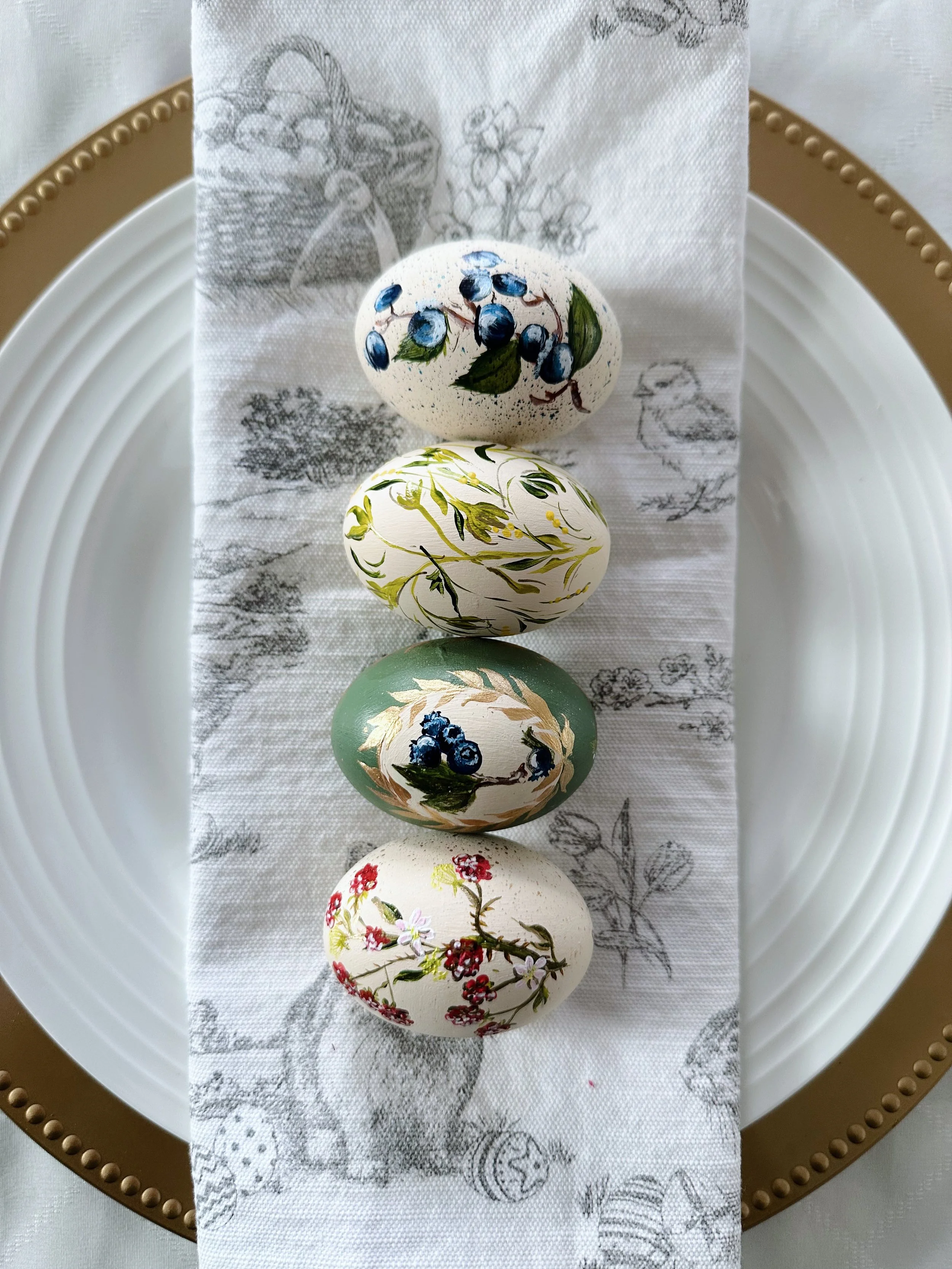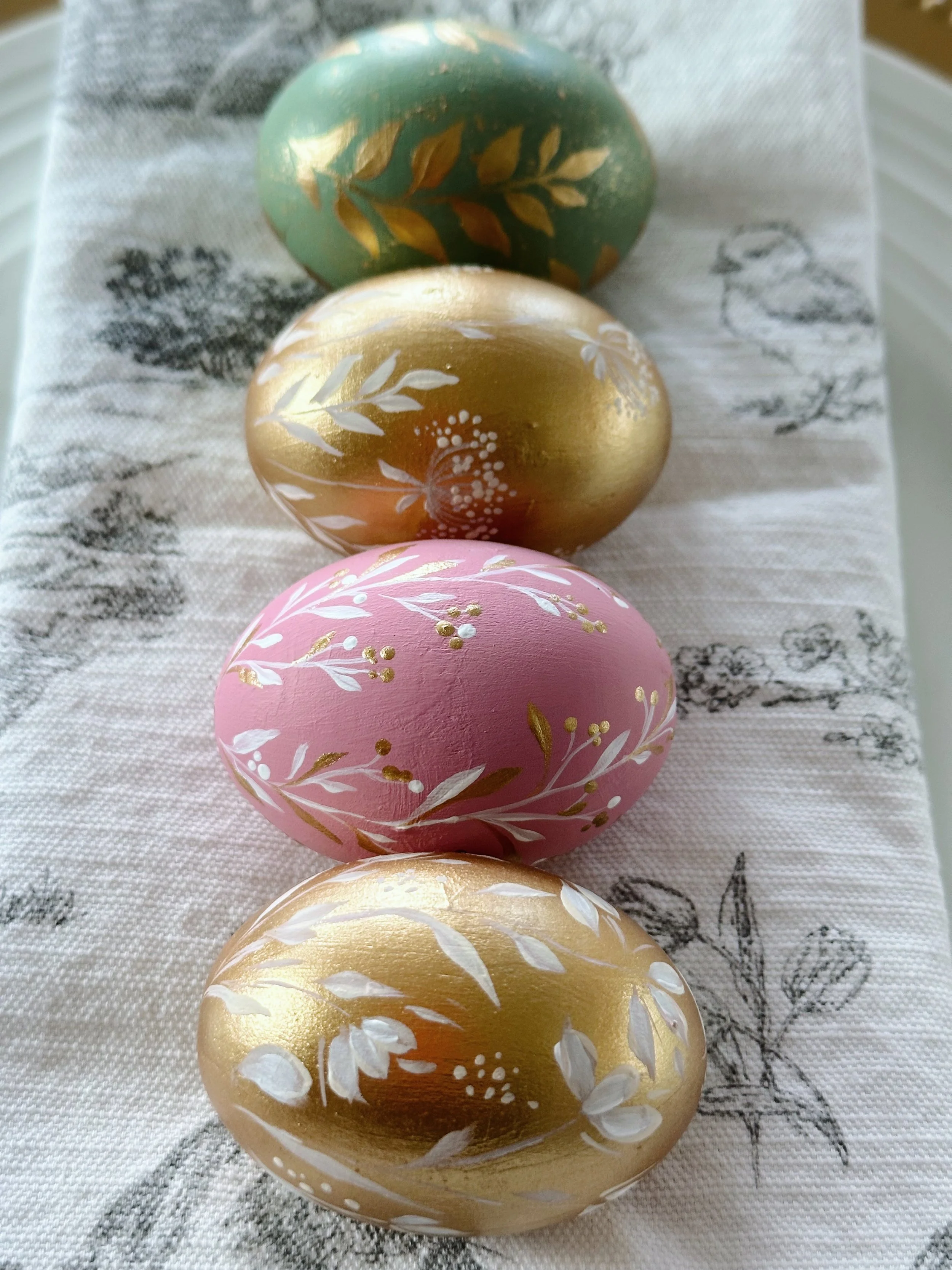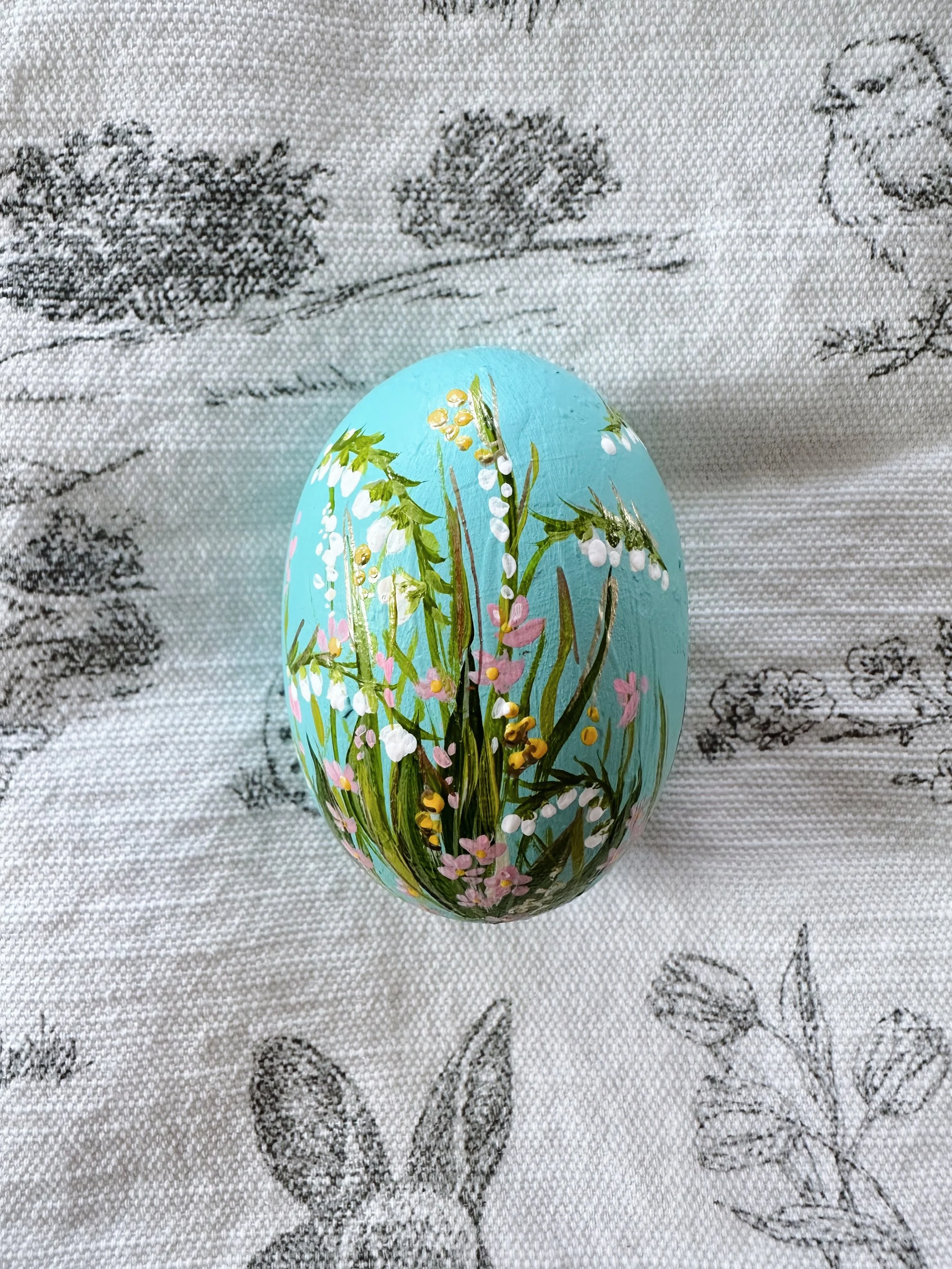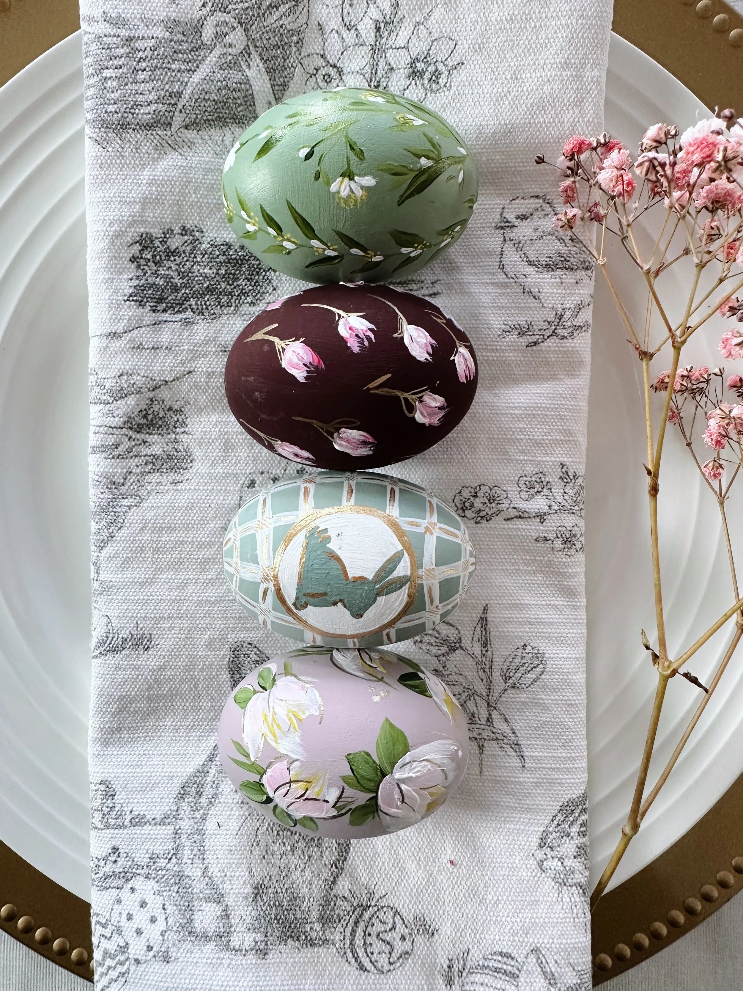 Each egg is a unique work of art, meticulously hand-painted with bright, colorful floral patterns using high-quality acrylic paints. Accented with delicate gold touches, these eggs blend traditional craftsmanship with a modern, elegant touch—perfect for gifting, collecting, or adding a sophisticated charm to your Easter celebrations.