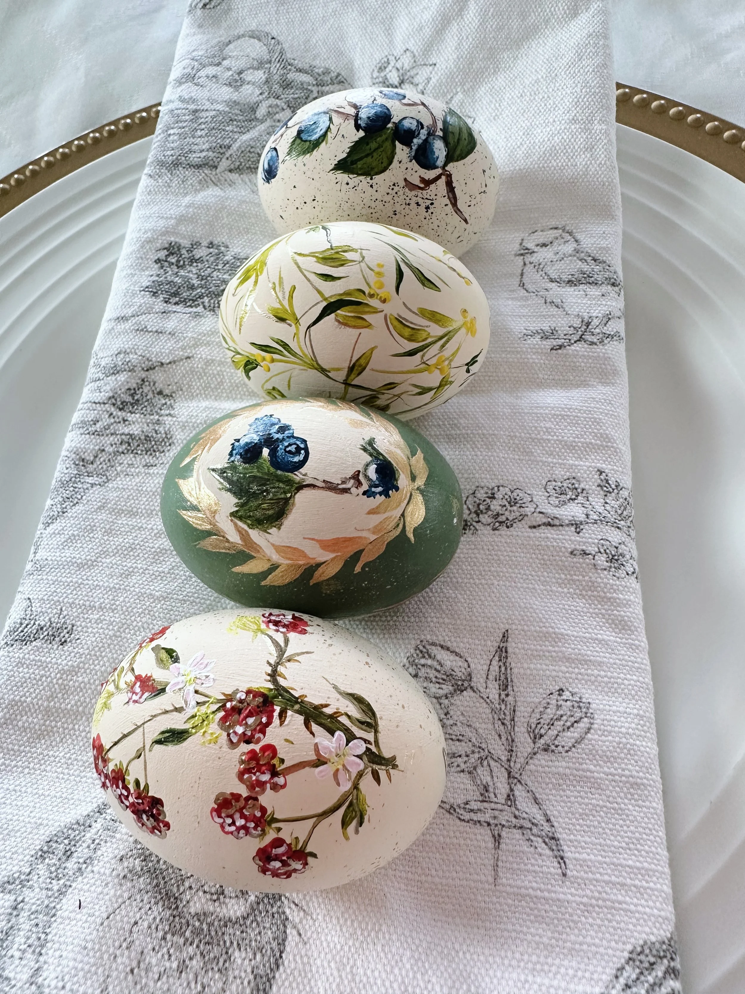 Easter Egg no.6 is a truly original piece of mini art with delicate seasonal raspberries. Each piece is a little work of art by Eilish Cott to bring the color and beauty into your home. Display in your easter centerpiece or tablescape. Gift to a friend or loved one. This solid wooden egg will be treasured as an heirloom piece to last a lifetime.
