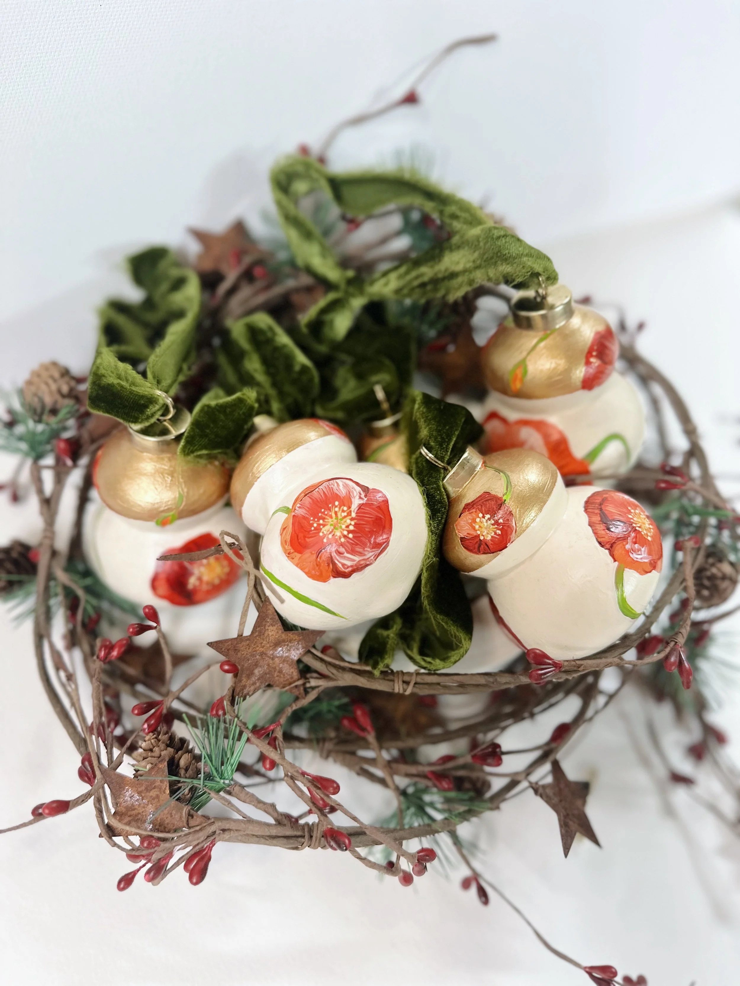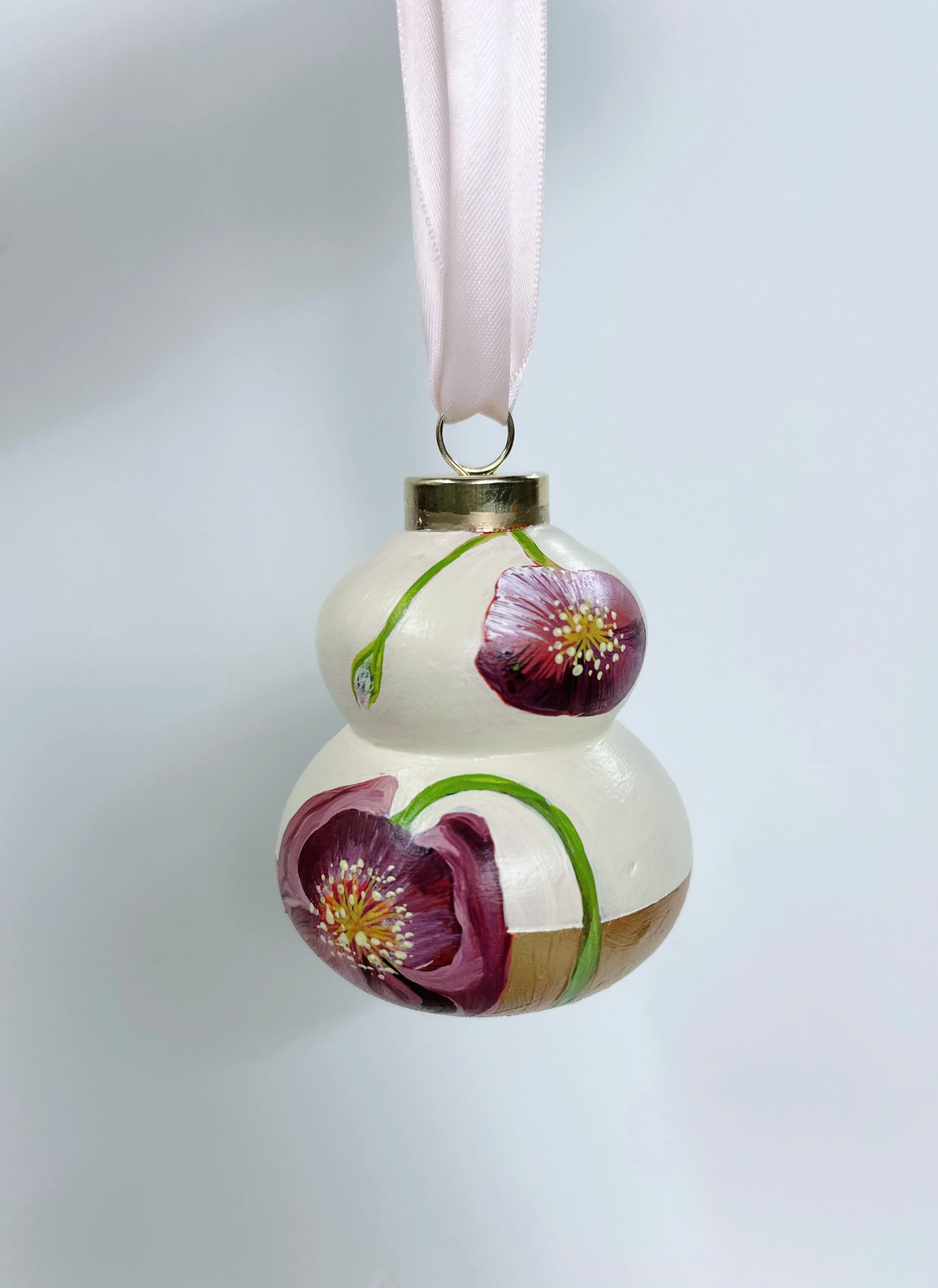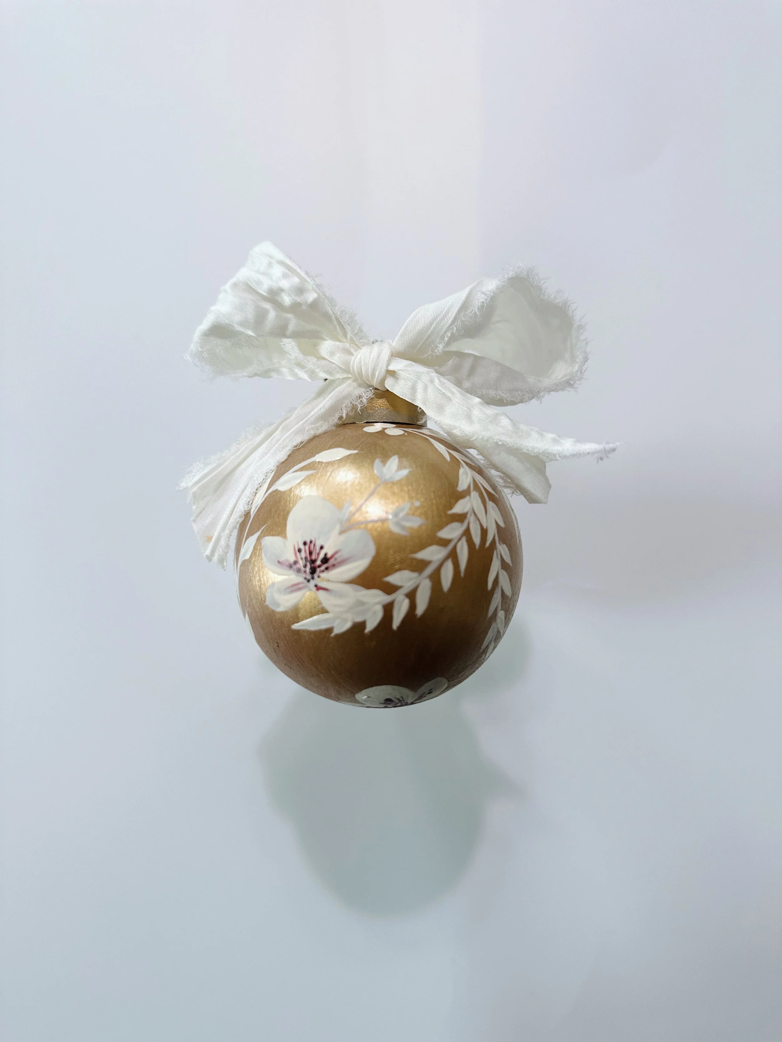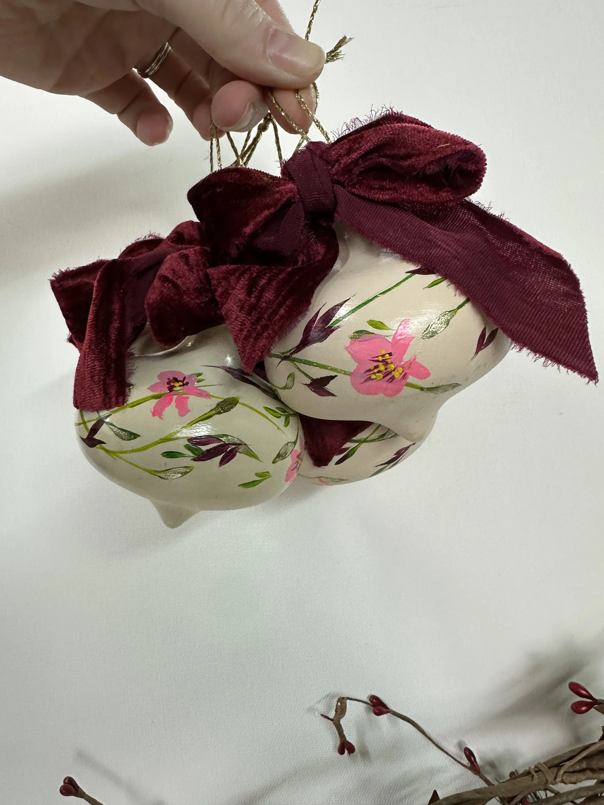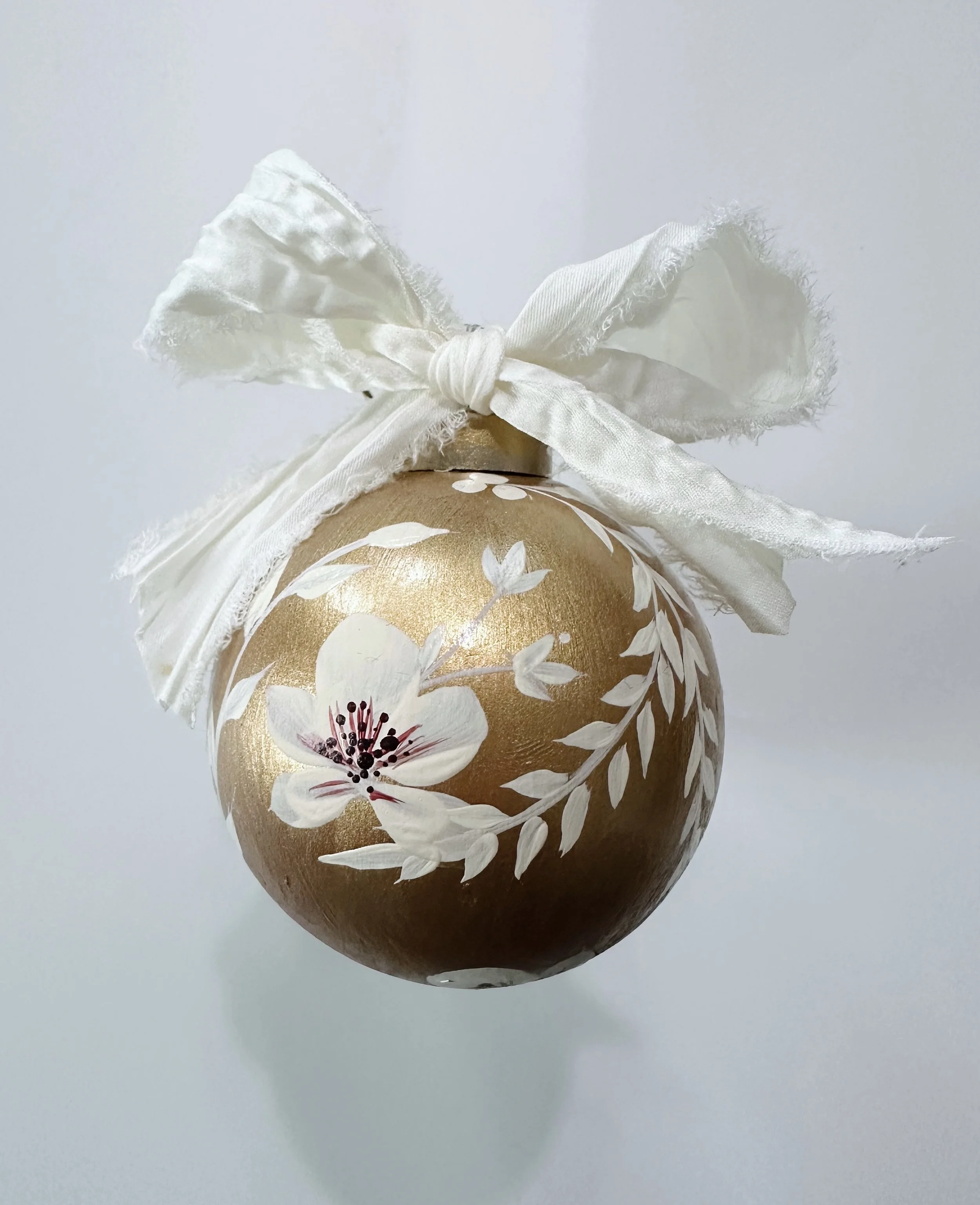 These handpainted, beautifully detailed tree ornaments celebrate our love of flowers, regardless of the season! For the holidays, bring in a little colour and beauty to your tree with these ornaments, all coming tied with a beautiful velvet bow, ready to hang!