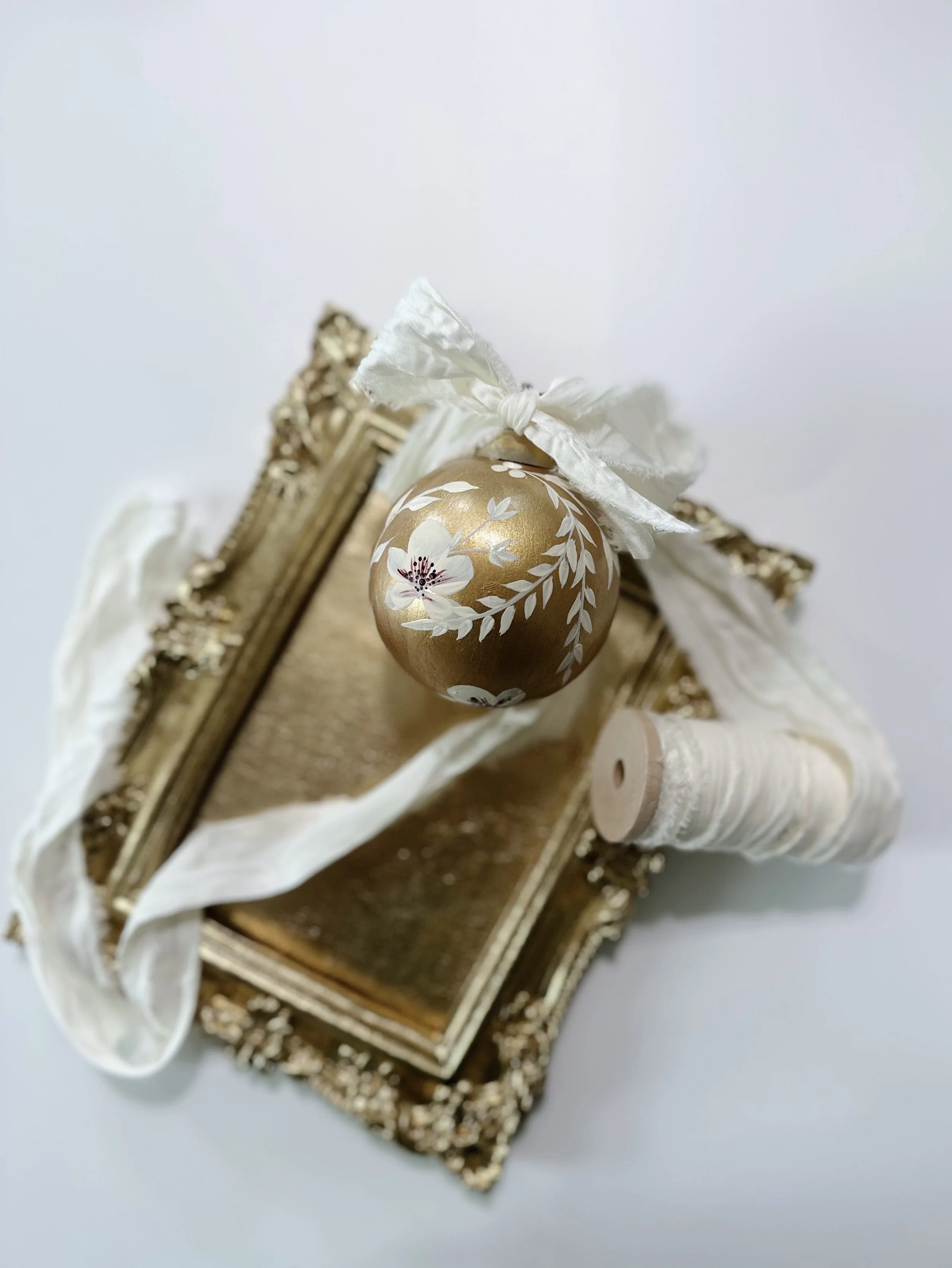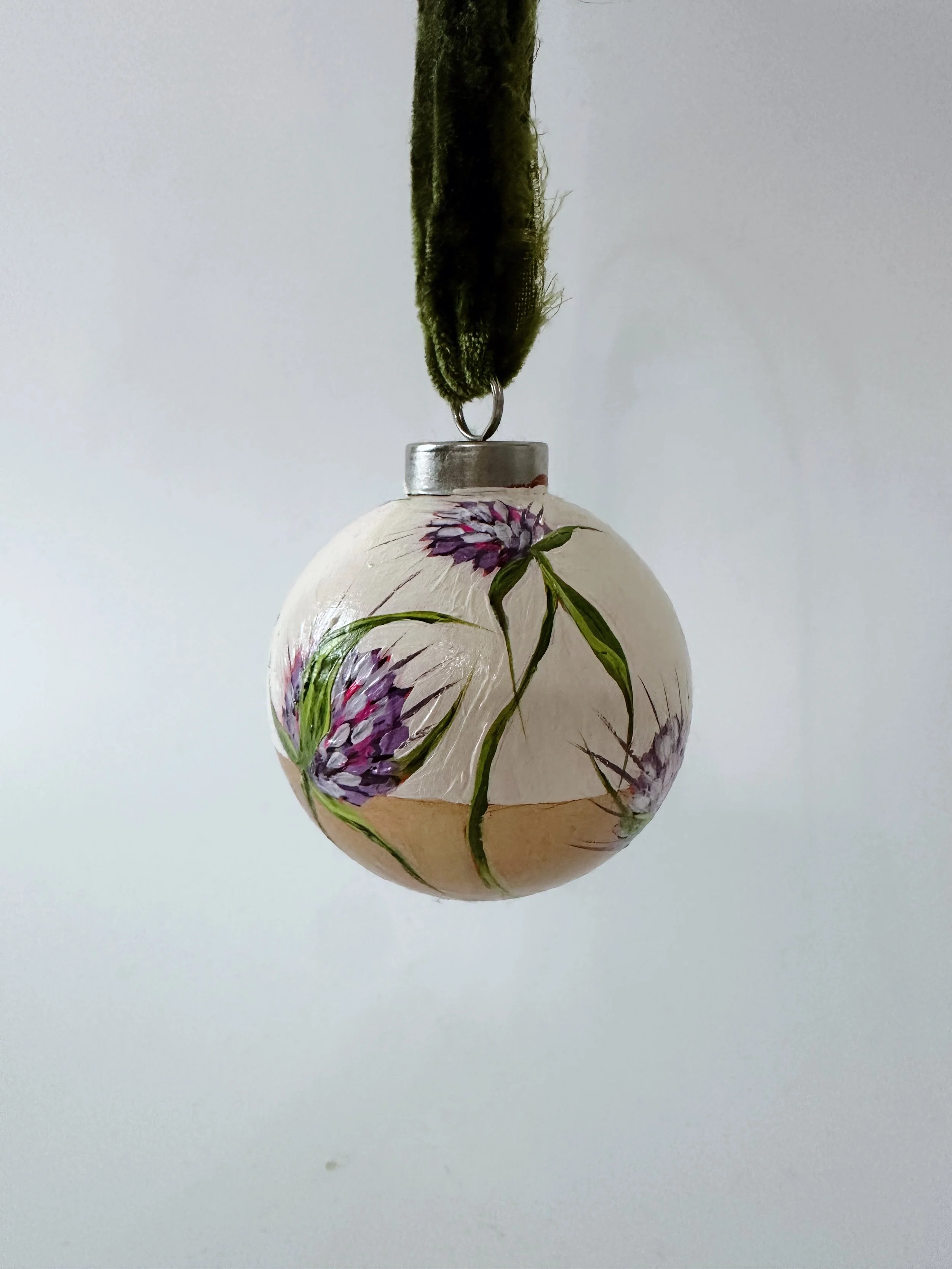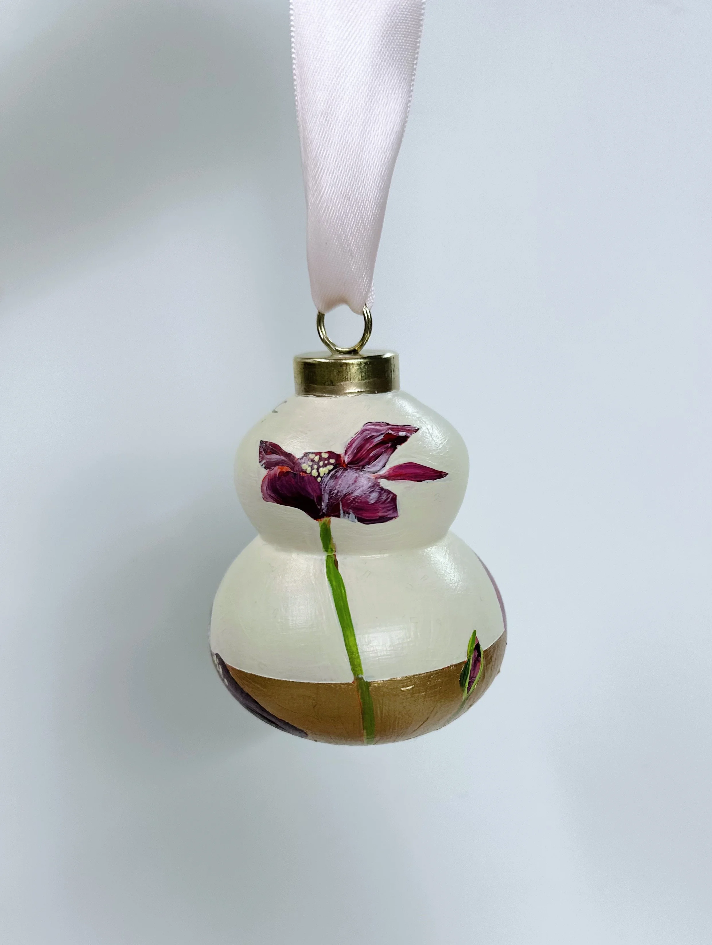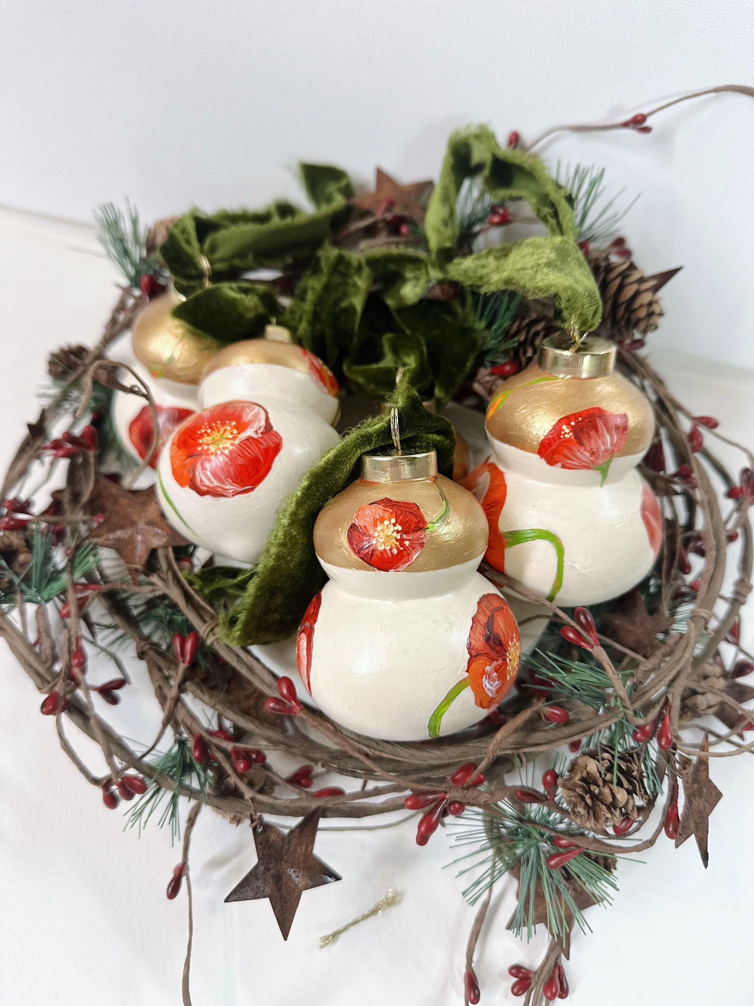 These handpainted, beautifully detailed tree ornaments celebrate our love of flowers, regardless of the season! For the holidays, bring in a little colour and beauty to your tree with these ornaments, all coming tied with a beautiful velvet bow, ready to hang!
