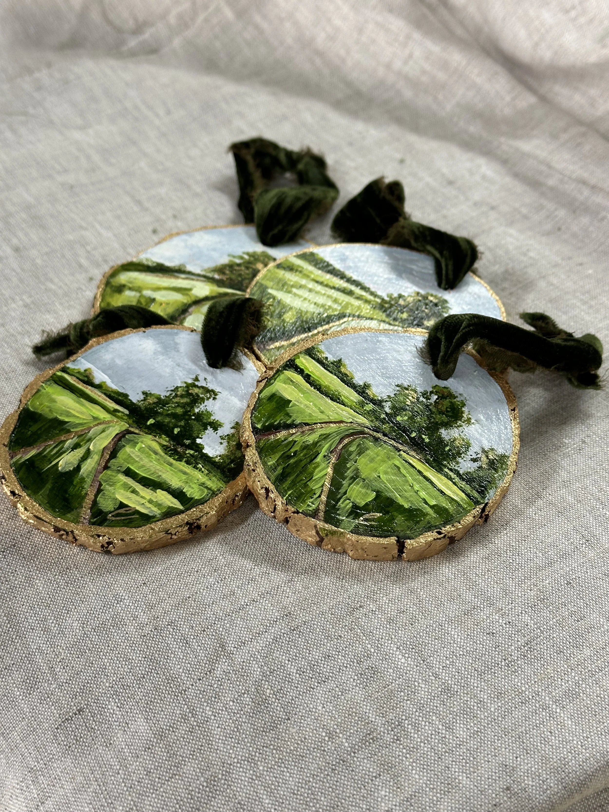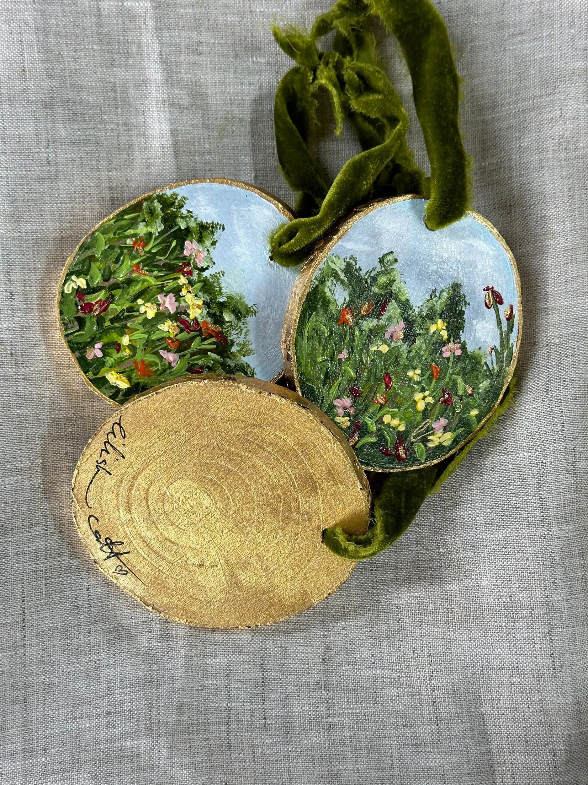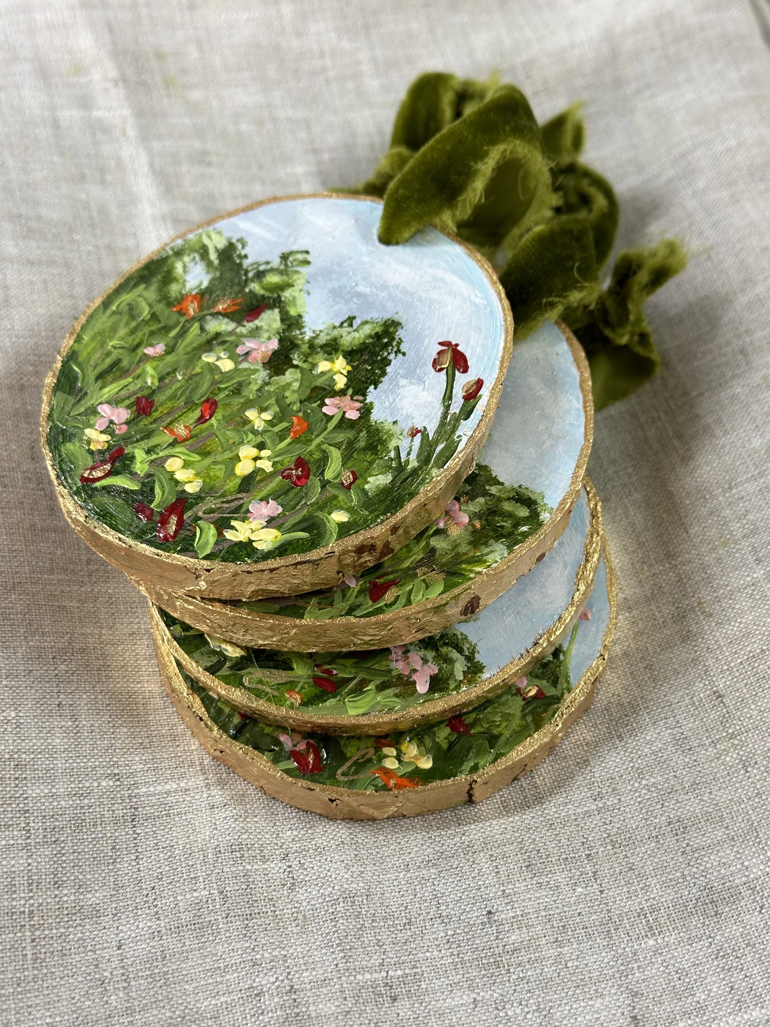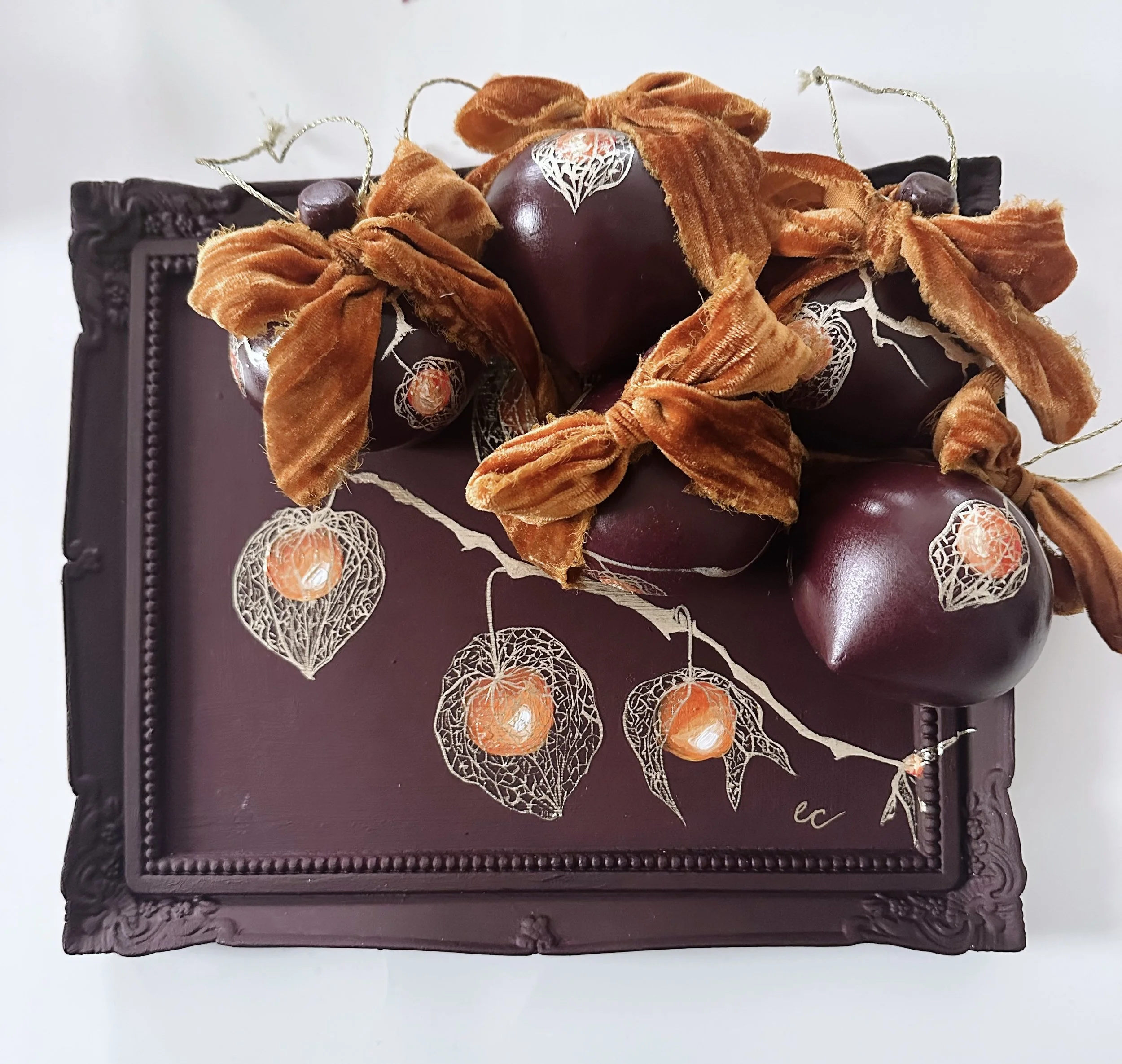 These handpainted, beautifully detailed tree ornaments celebrate our love of flowers, regardless of the season! For the holidays, bring in a little colour and beauty to your tree with these ornaments, all coming tied with a beautiful velvet bow, ready to hang!